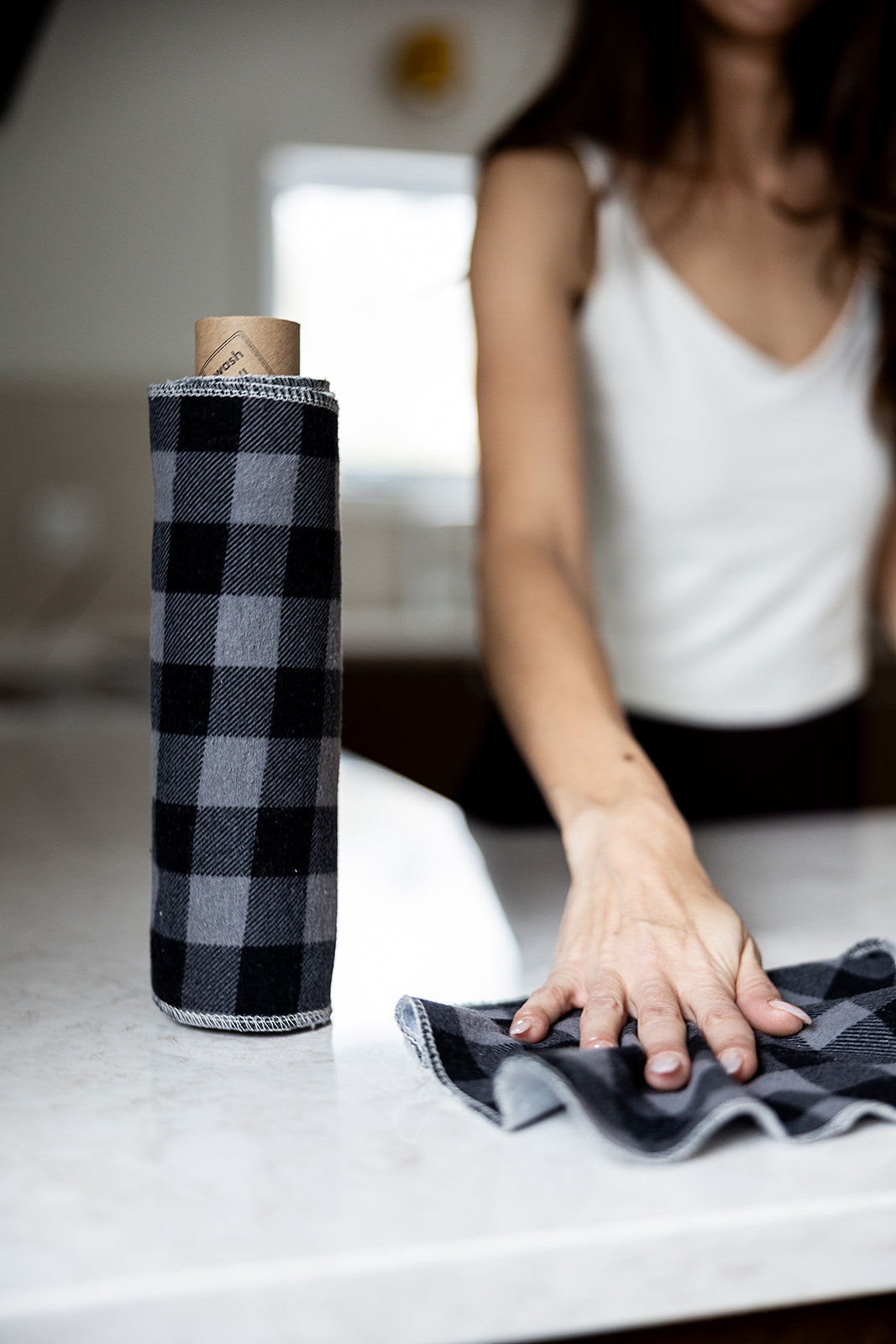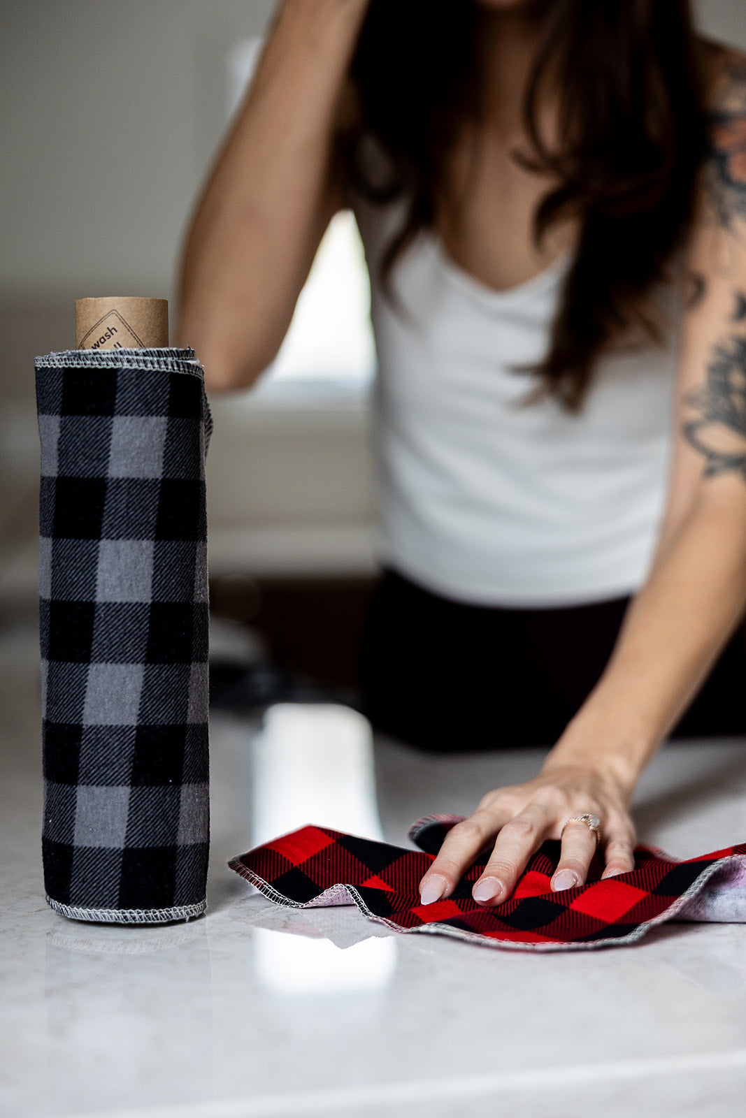 Rolling up your freshly laundered Non•Paper Towels couldn't be easier! Just stack 'em up and wrap, one at a time, around our custom kraft paper Tubie. Fits all standard paper towel holders. Easy peasy!